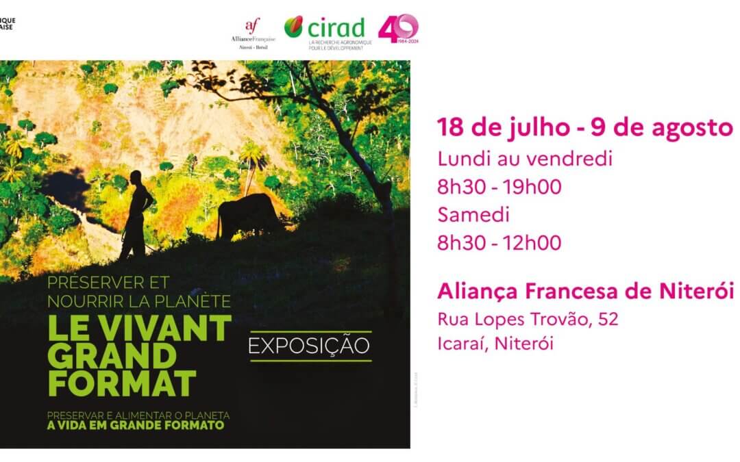 A Aliança Francesa de Niterói tem o prazer de convidá-lo para a exposição “Preservar e nutrir o Planeta: A vida em grande formato” a partir do dia 18 de julho. A exposição celebra os 40 anos do CIRAD, realizada em parceria com a Embaixada da França no Brasil.
