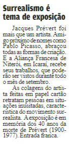 Gazeta Niteroiense – Surrealismo é tema de exposição Veículo: Gazeta Niteroiense Data: 9/09/17 Página: 5 Editoria: cultura